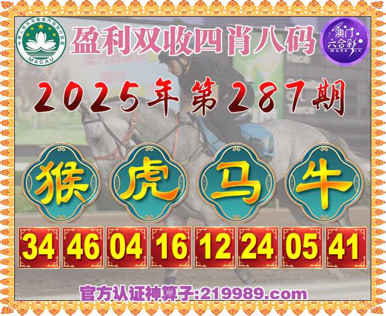 287期:『盈利双收』 🀄四肖八码🀄【虎马牛】开:猴34