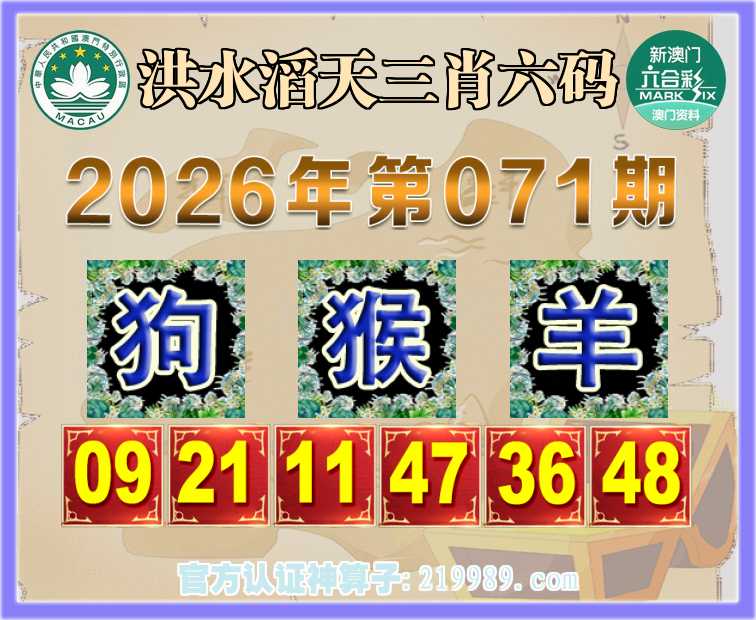 071期: 洪水滔天 👘三肖六码👘【狗猴】开:羊48