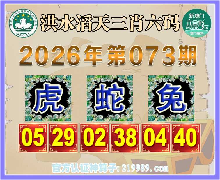 073期: 洪水滔天 👘三肖六码👘【虎蛇兔】开:鸡34