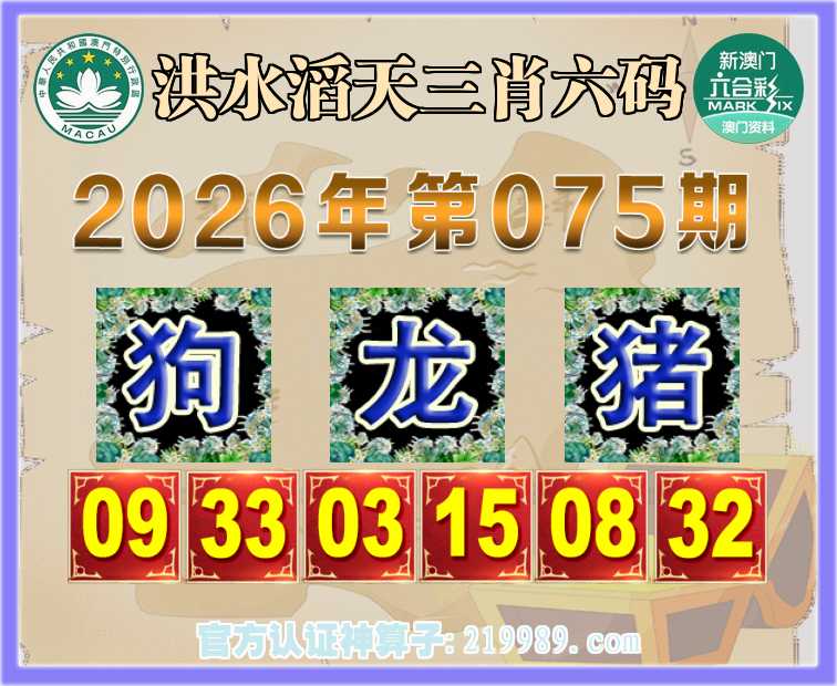075期: 洪水滔天 👘三肖六码👘【龙猪】开:狗33