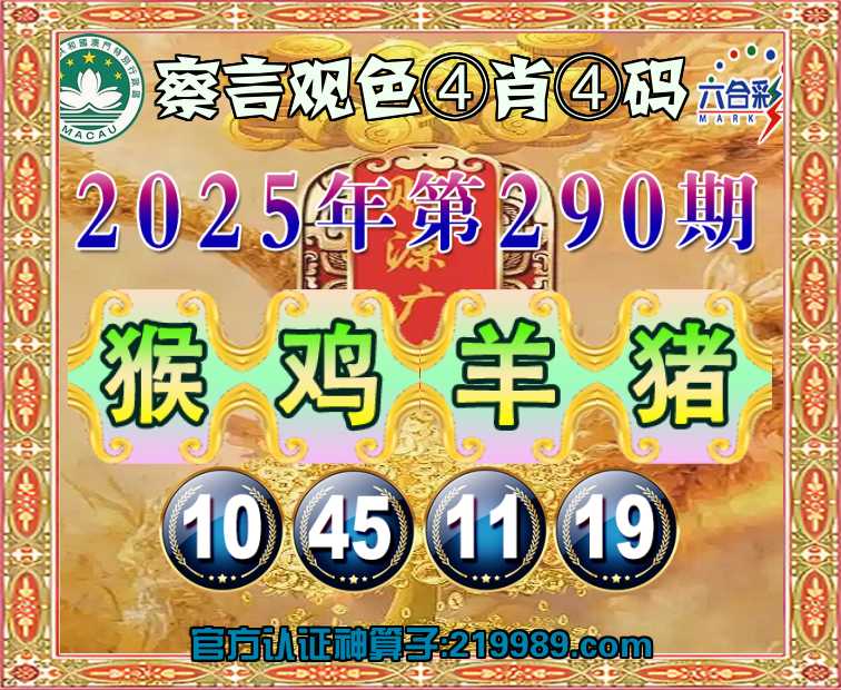 290期:【察言观色】 🥉④肖④码🥉【猴鸡羊】【10.45.11.19】开:猪19
