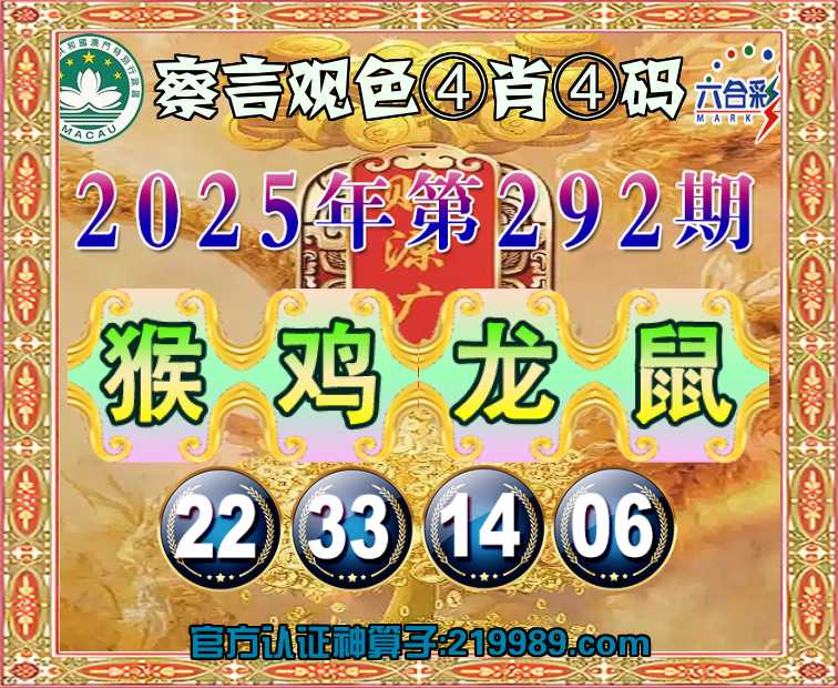 292期:【察言观色】 🥉④肖④码🥉【猴鸡鼠】【22.33.14.06】开:龙02