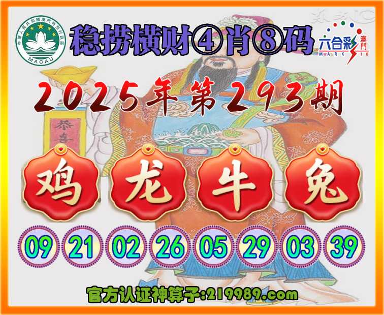 293期:《稳捞横财》 ☝️④肖⑧码☝️【鸡龙牛兔】开:00准